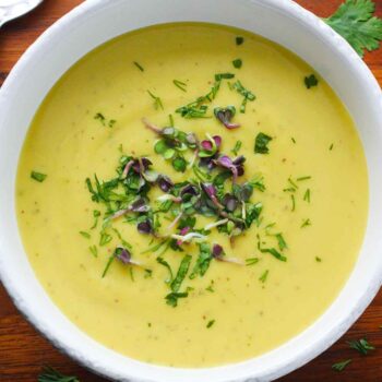 1. Use a food processor to blend the marinade ingredients until they’re smooth, then cover the chicken and let it marinate for about 20 minutes while you’re prepping everything else.